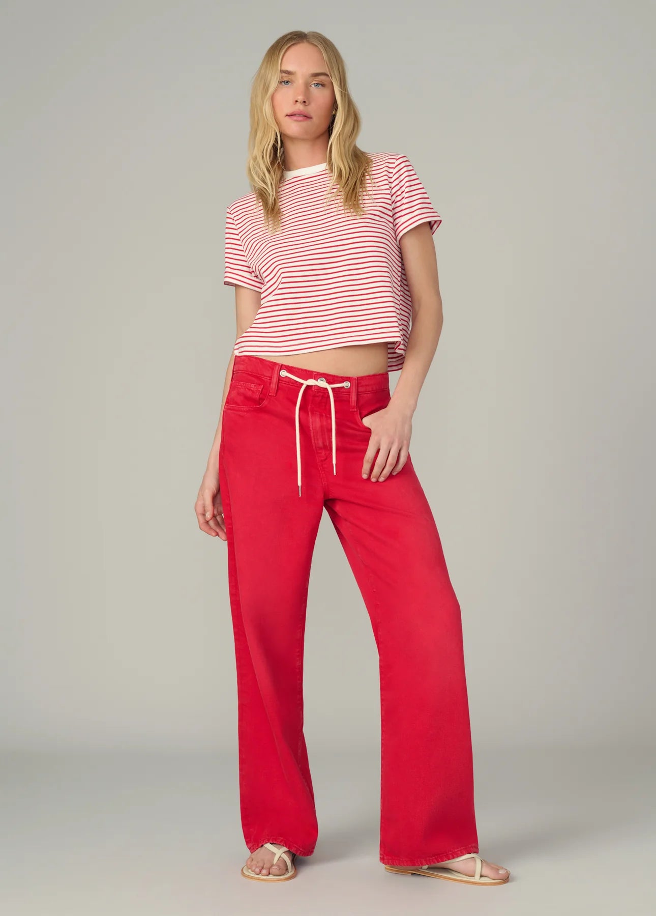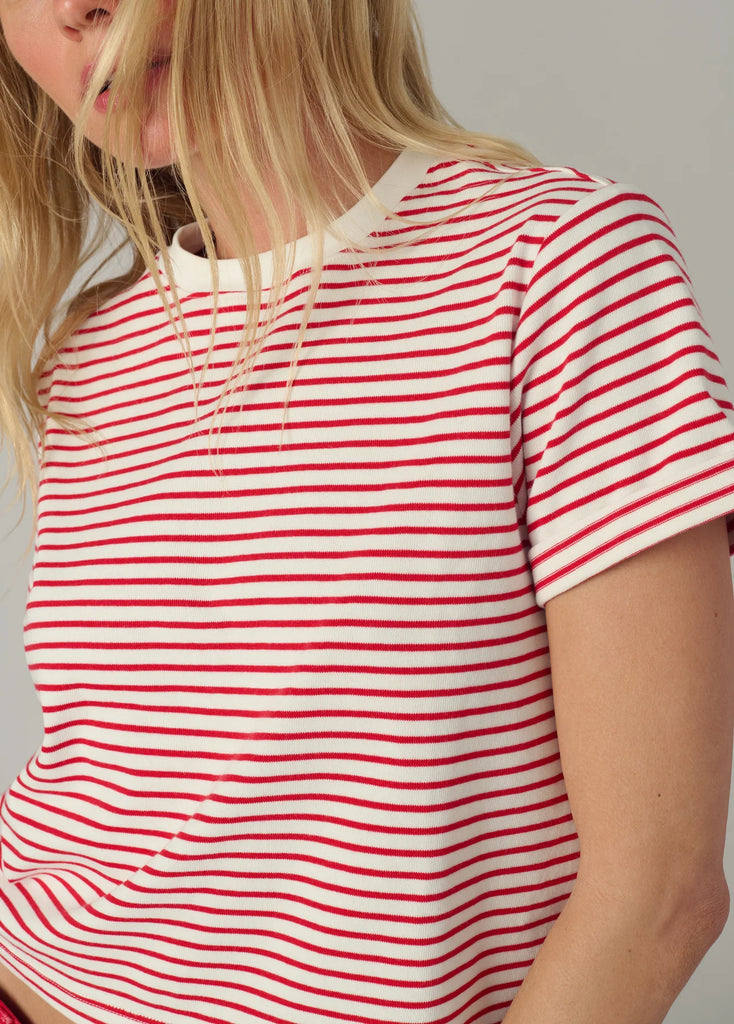 Joe's Jeans The Boxy Tee - White/Cherry Red Stripe
