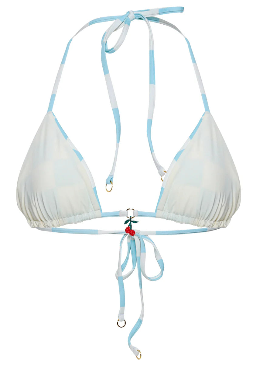 Balmy, where have you been all our lives? Here's the perfect sliding triangle bikini top for summer vacations. With adjustable straps that tie at the neck and back and its low coverage, this perfect bikini top is a must for every girl, and a bestseller here at Maaji.