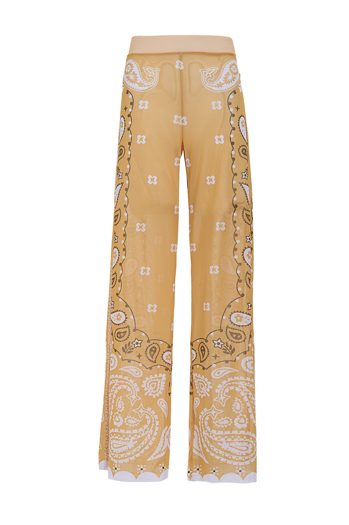 - Mesh pants with a semi-sheer finish.