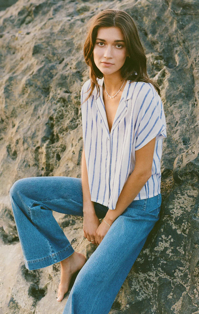 Z Supply Stella Striped Modal Rib Henley - Crystal
