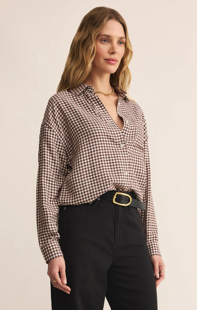 Z Supply River Plaid Button Up Top - Chocolate Cherry