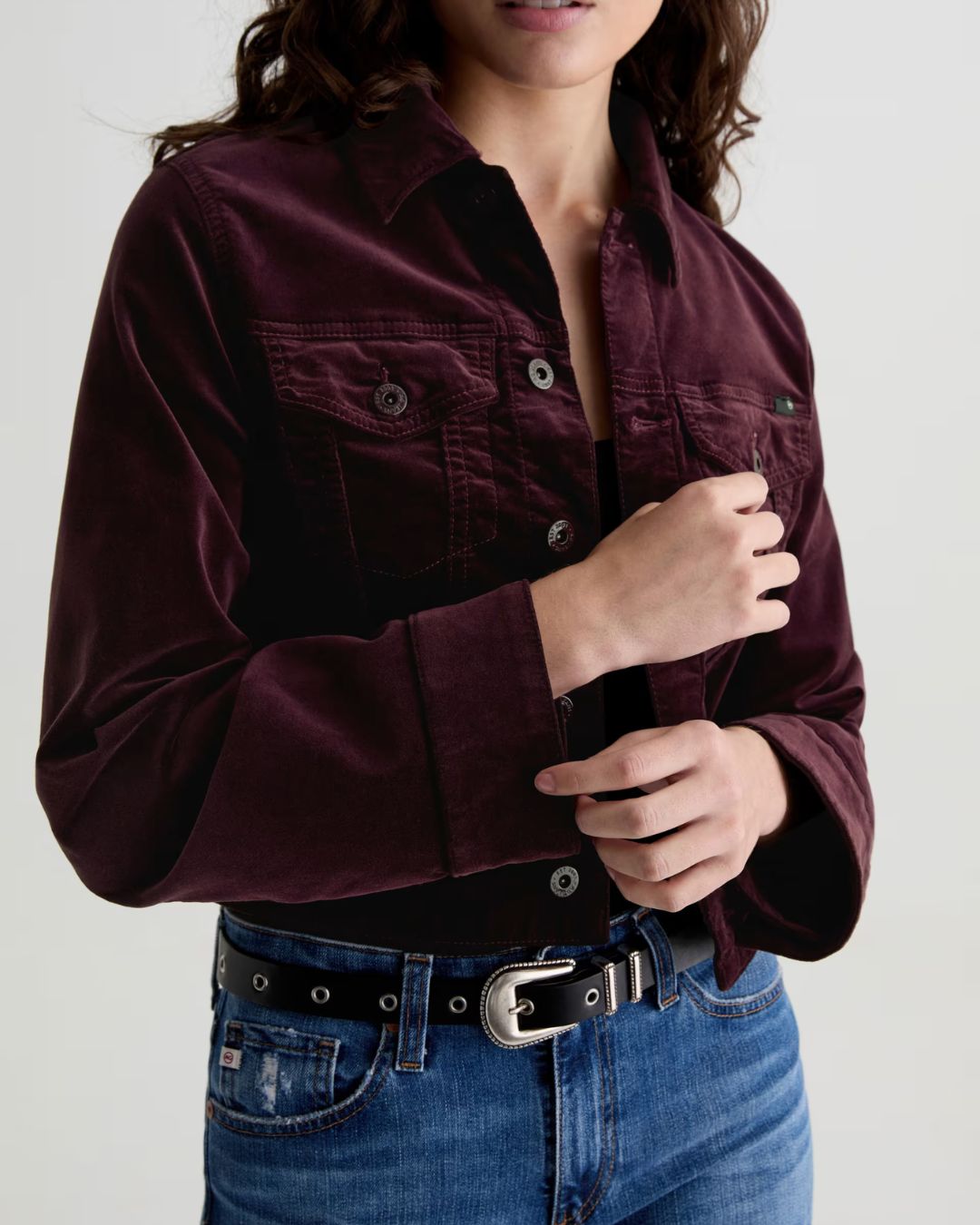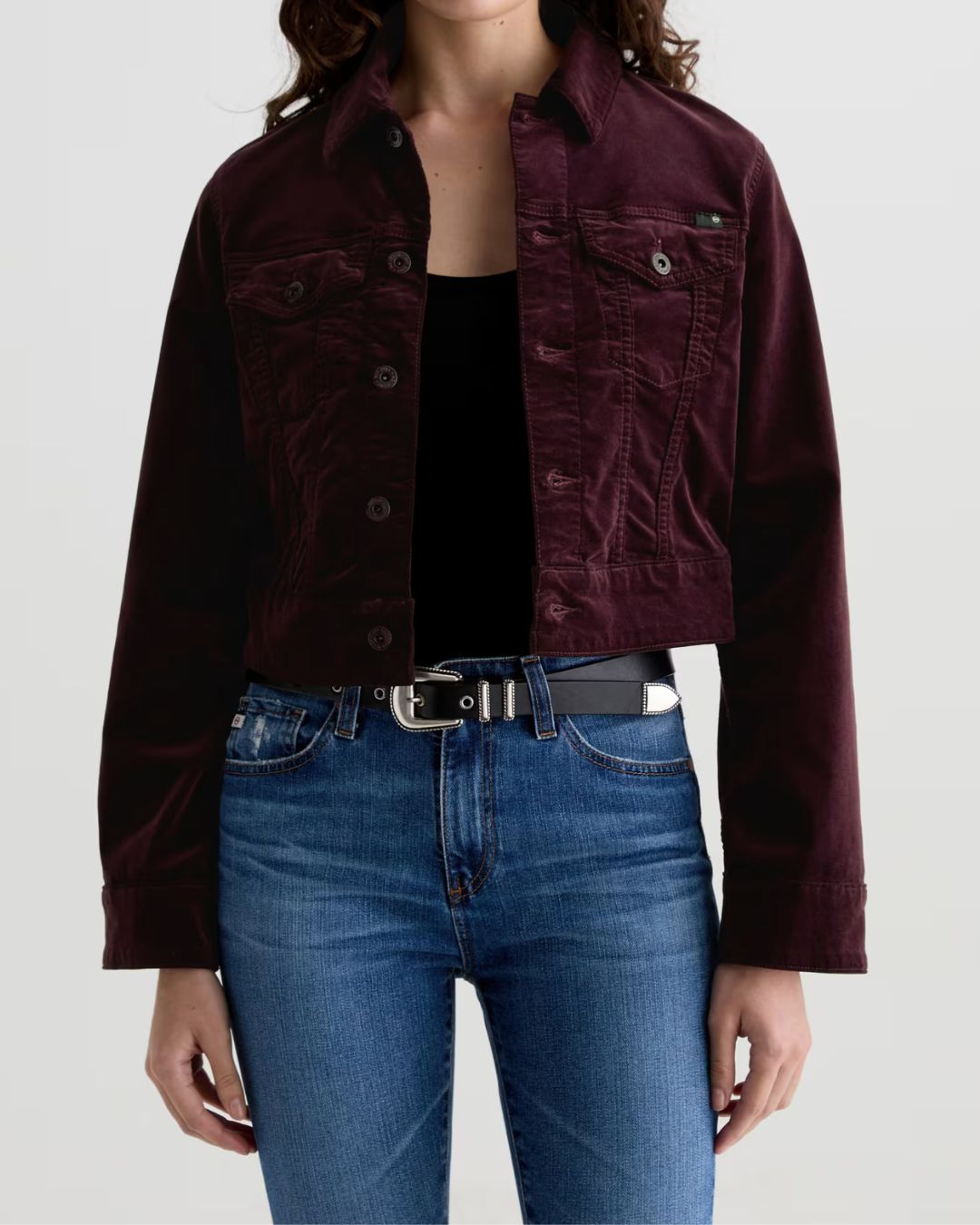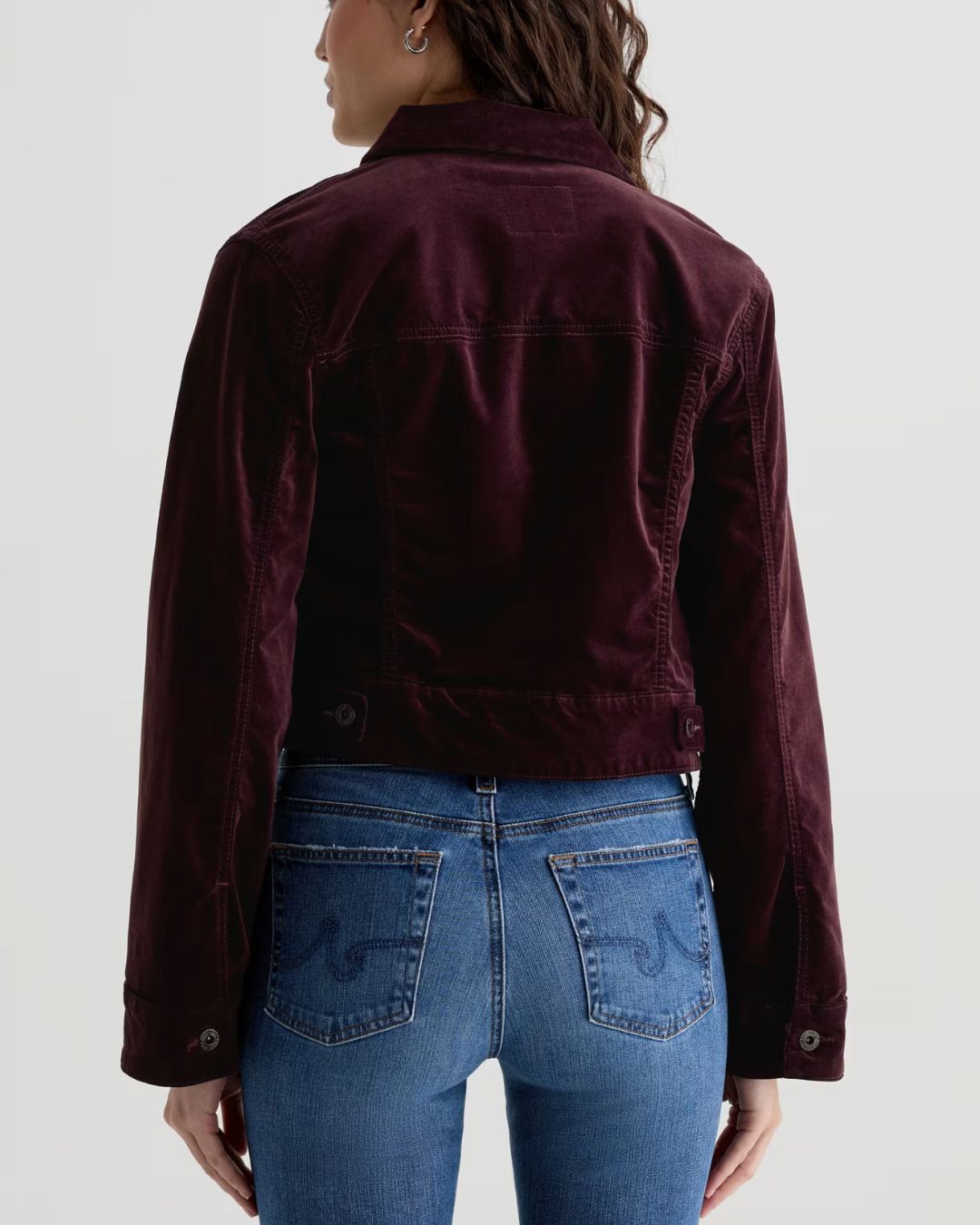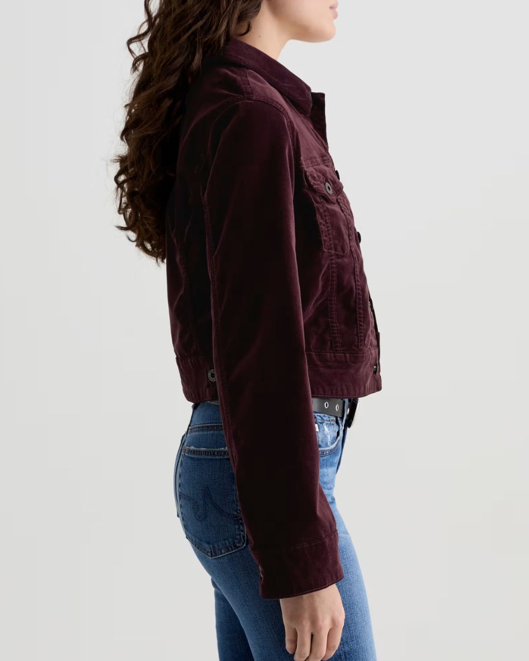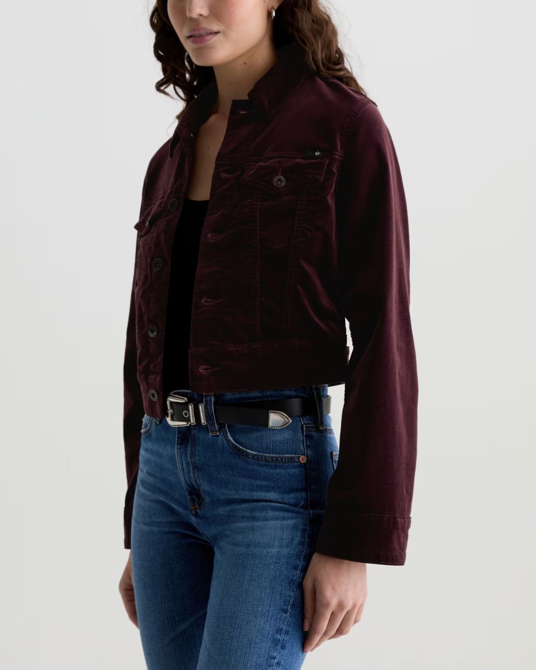 AG Isa Velvet Cropped Trucker Jacket - Winery