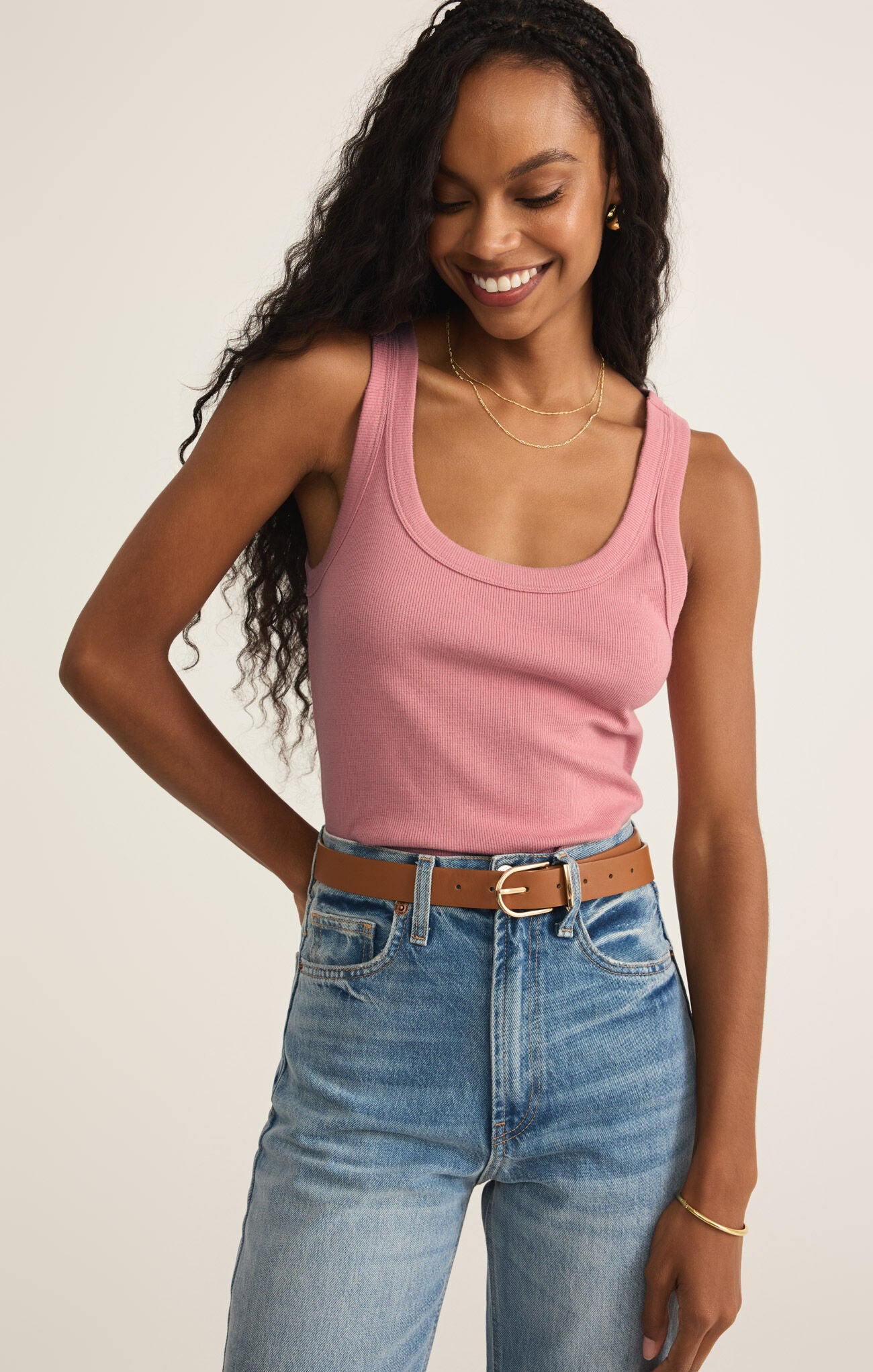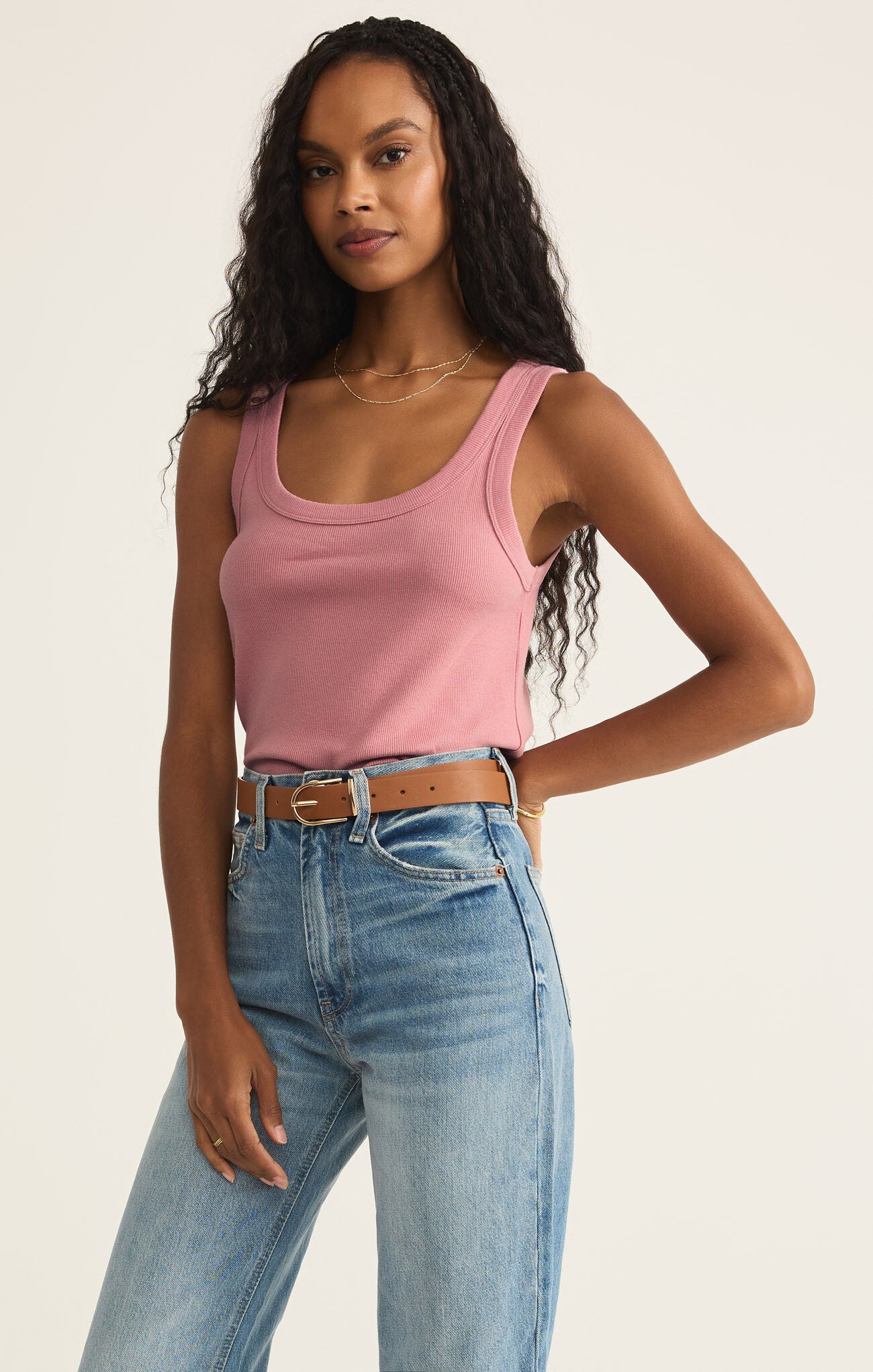 Z Supply Elin Rib Tank - Pink Smoke