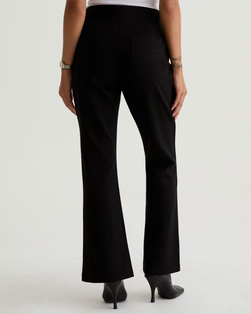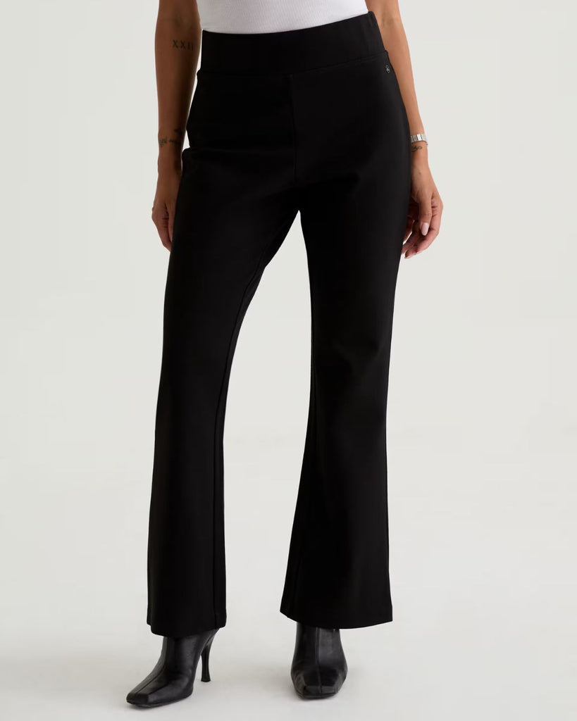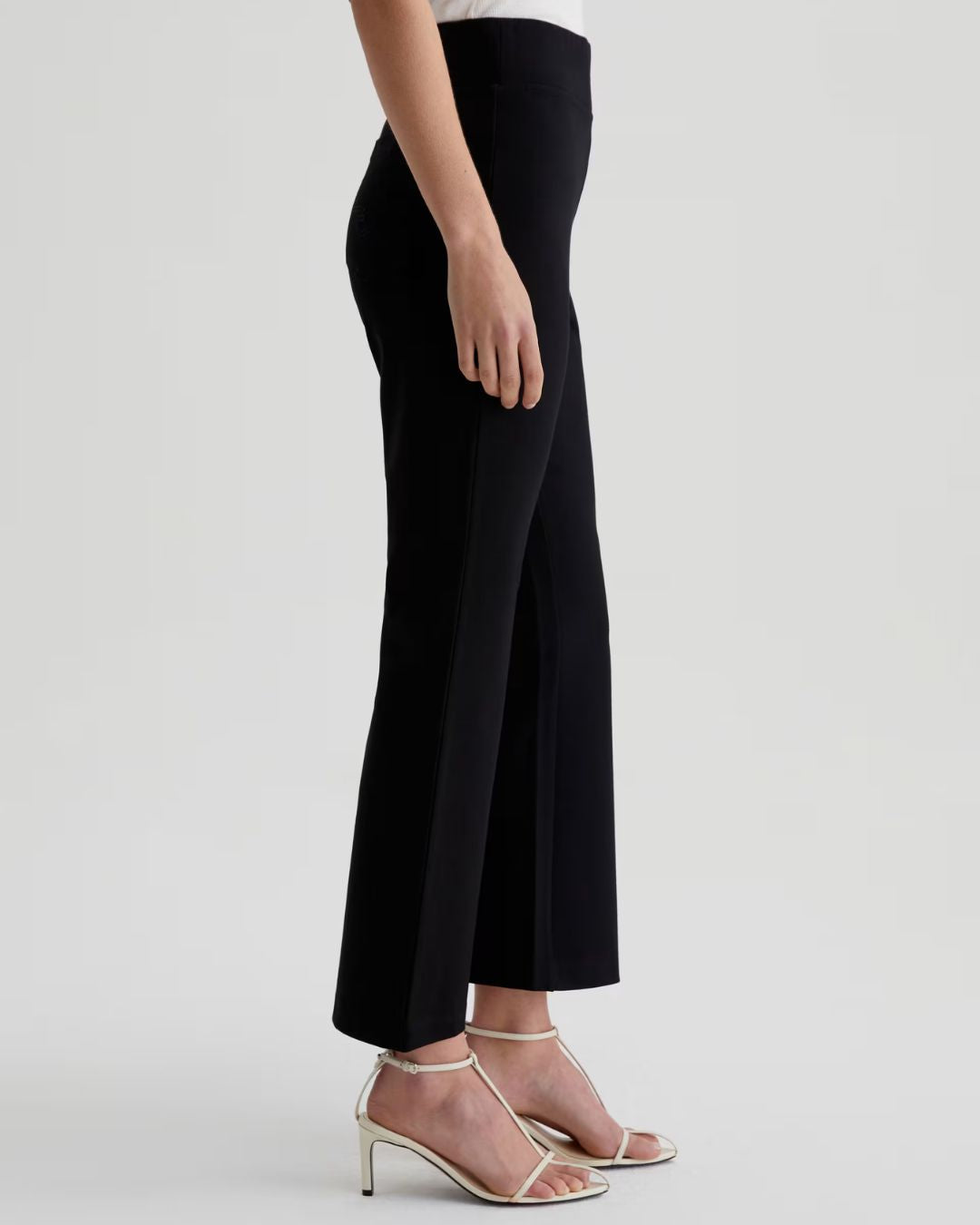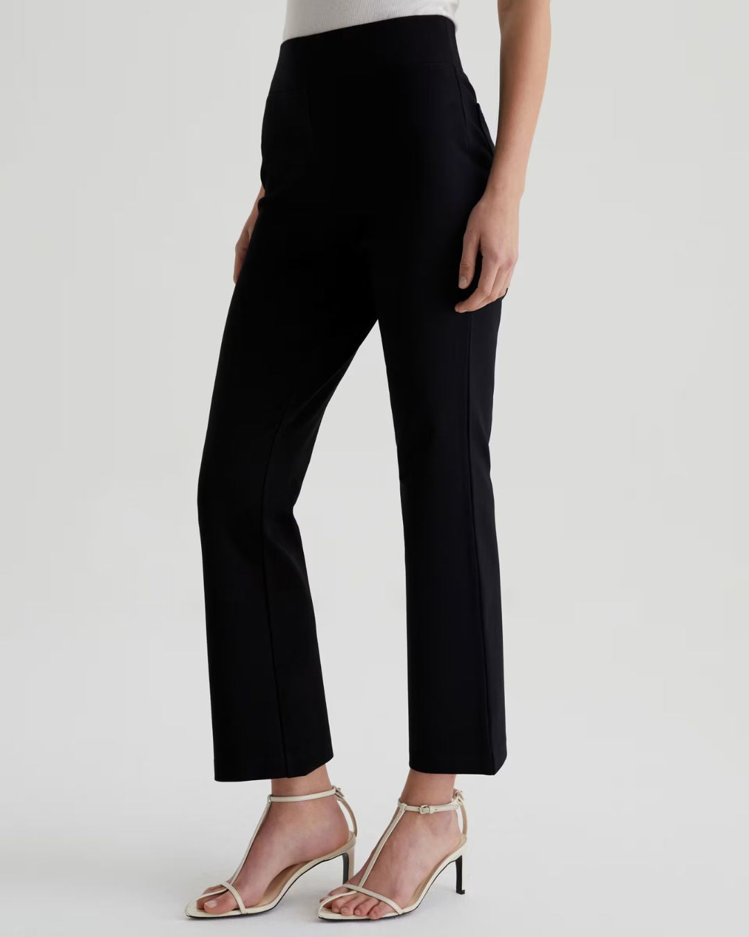 AG's Salma pull-on pants have a flared silhouette in soft stretch ponte. Designed with a high waist, these cropped black flares are perfect for easy everyday wear.