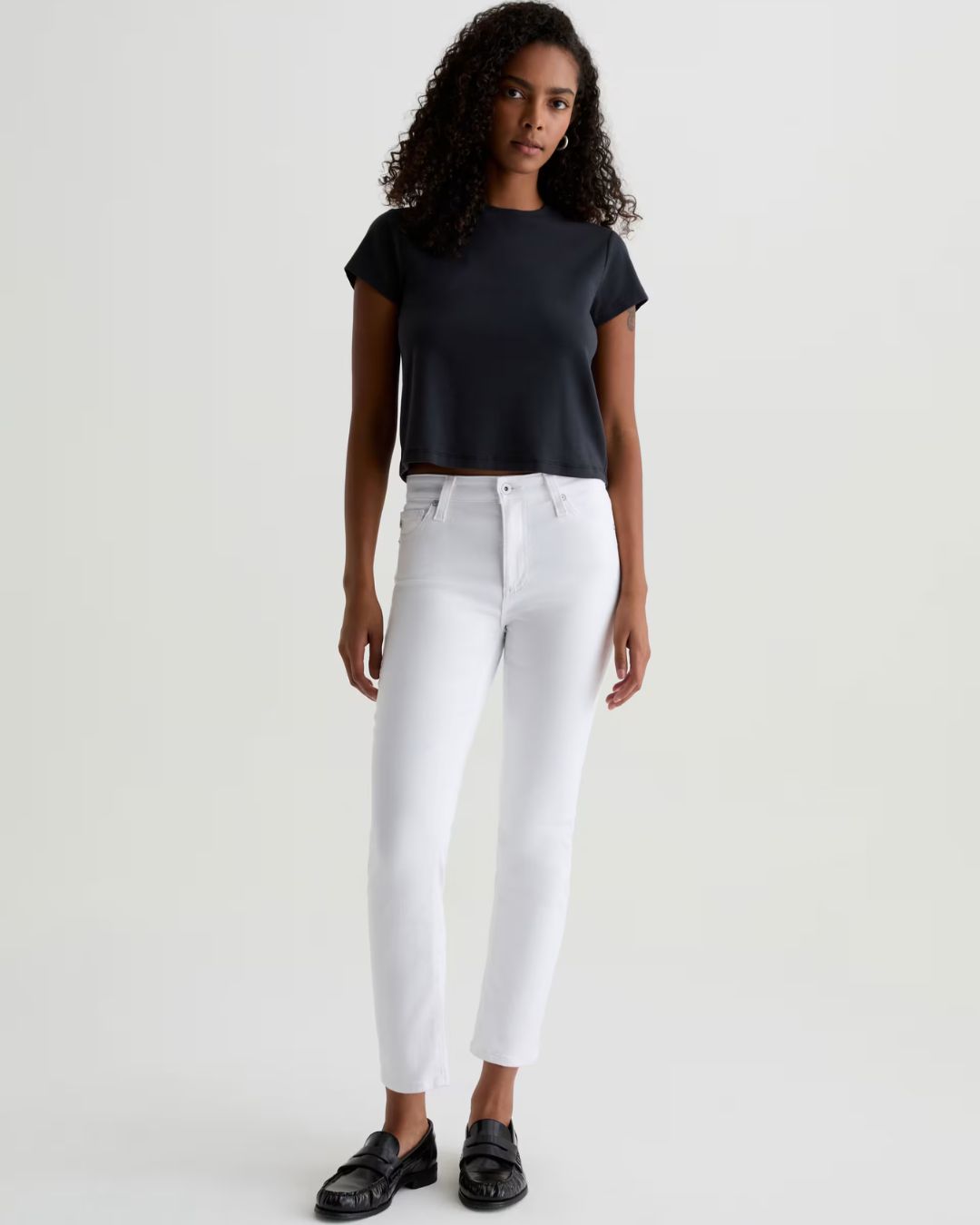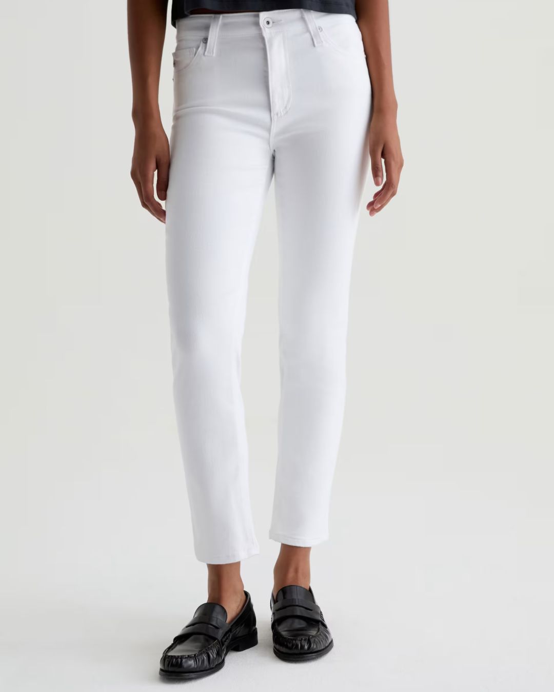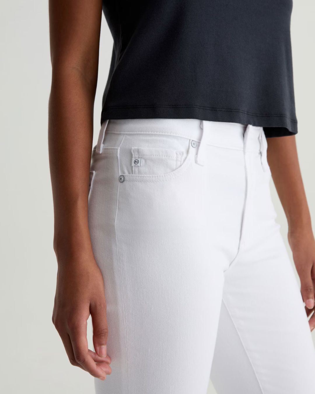The Mari Crop is a mid-rise slim straight updated in bright white. These five-pocket jeans fit easy around the hips and feature a straight-leg silhouette with a slim, cropped finish. They're crafted from 10.25 oz. Cloud Soft Stretch Denim, an exclusive AG fabric with special left-hand twill construction that allows the yarns to gently relax and untwist for a luxe, supple feel. It's designed to get softer with every wear.