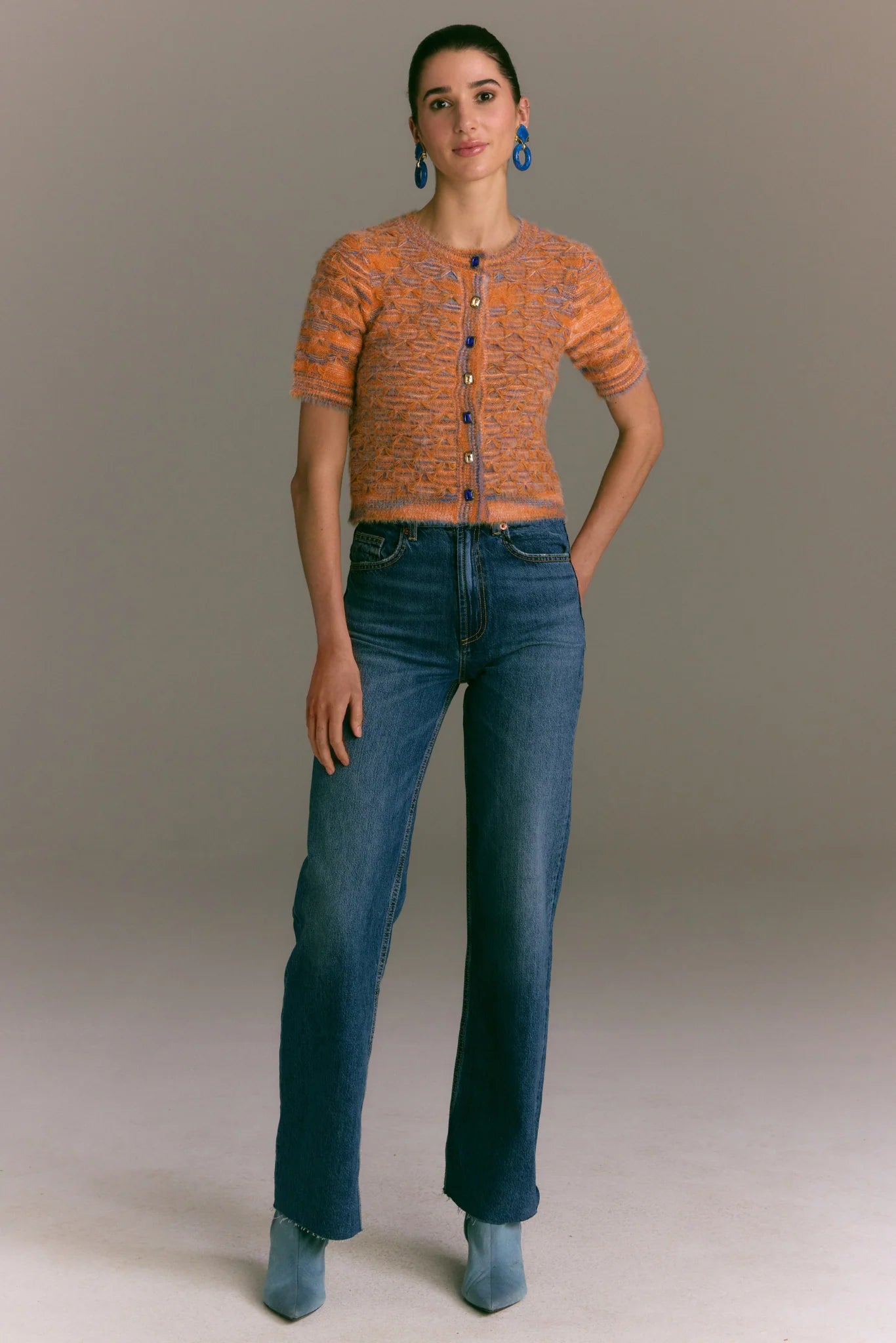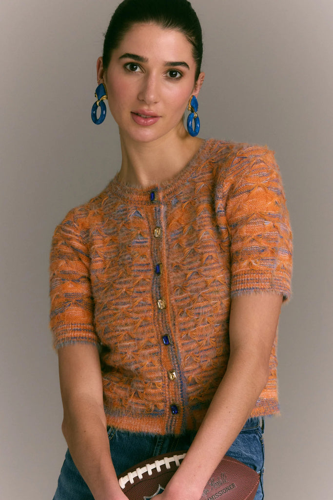 Allison New York Fuzzy Effie Cardigan - Orange/Blue