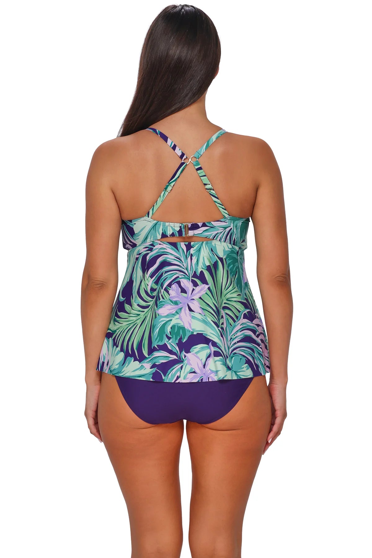 The Tori Tankini now has a J-hook! Delicate shirring and an extravagant twist bodice contrast with a flowy, loose-fitting body. This tankini also features removable cups, adjustable straps that can be converted to a crossback, and a back hook closure.