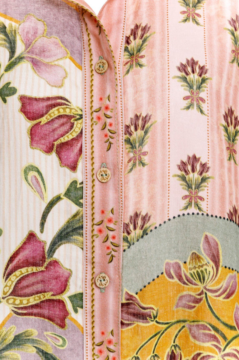 The Chrissy Shirt is a breezy statement piece designed with effortless elegance. Its 3/4 sleeves and front button closure give it a relaxed silhouette, while the vibrant placement print brings a touch of Aura’s poetic inspiration. Made in Colombia, this versatile shirt is perfect for layering or wearing solo.