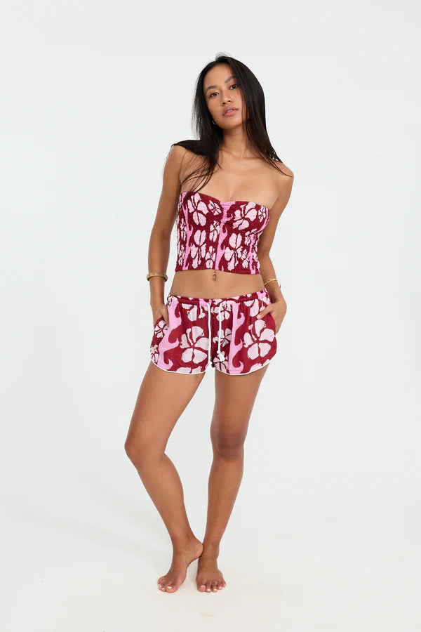 The perfect shorts to throw over your favorite Benoa bikini. These mini shorts are made in our buttery soft eco rayon. Feature a self tie, drawstring, elastic waist, pockets and piping around the hem.