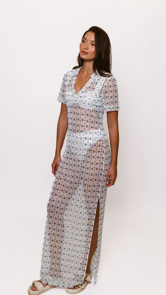 Hutch Corey Cover-Up - White and Blue Trellis Floral