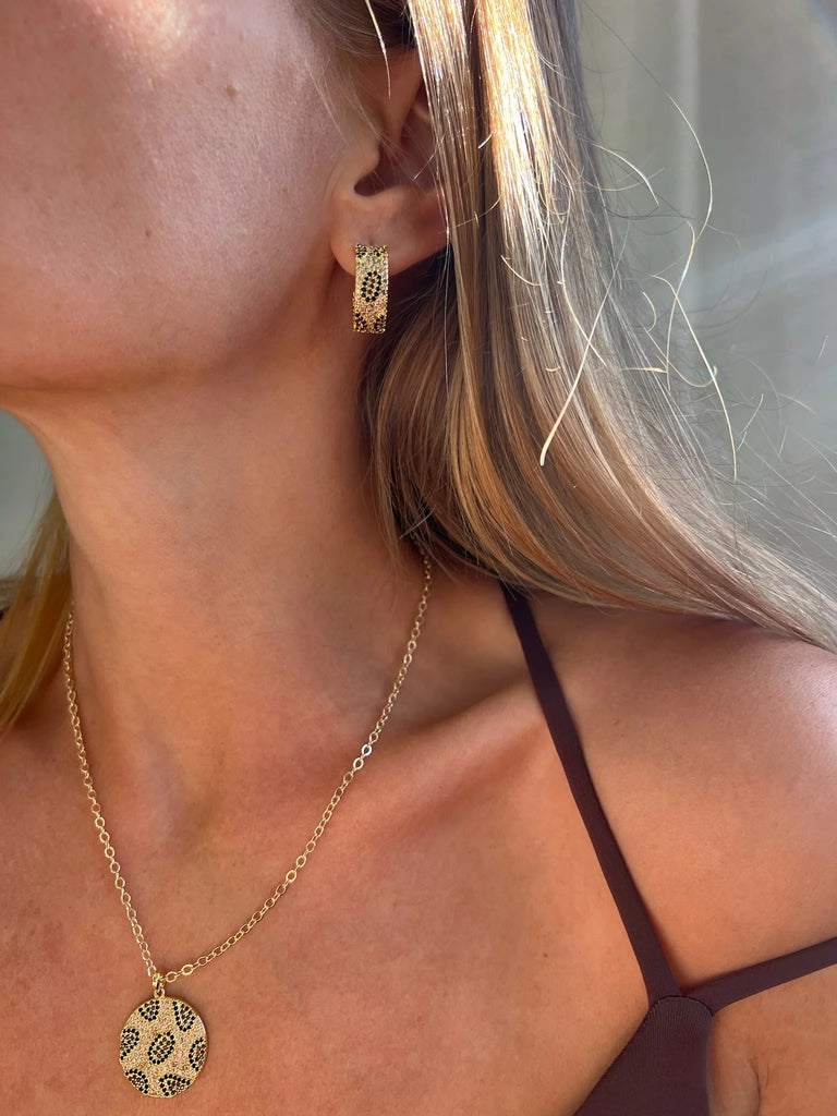 These 1/2-inch hoop earrings are elevated with a playful yet sophisticated touch, featuring a stunning leopard print design that add a pop of texture and style. The compact hoops are lightweight and comfortable, making them perfect for everyday wear while still offering a bold, eye-catching statement. A versatile addition to any collection, these earrings effortlessly blend trendy flair with timeless elegance.