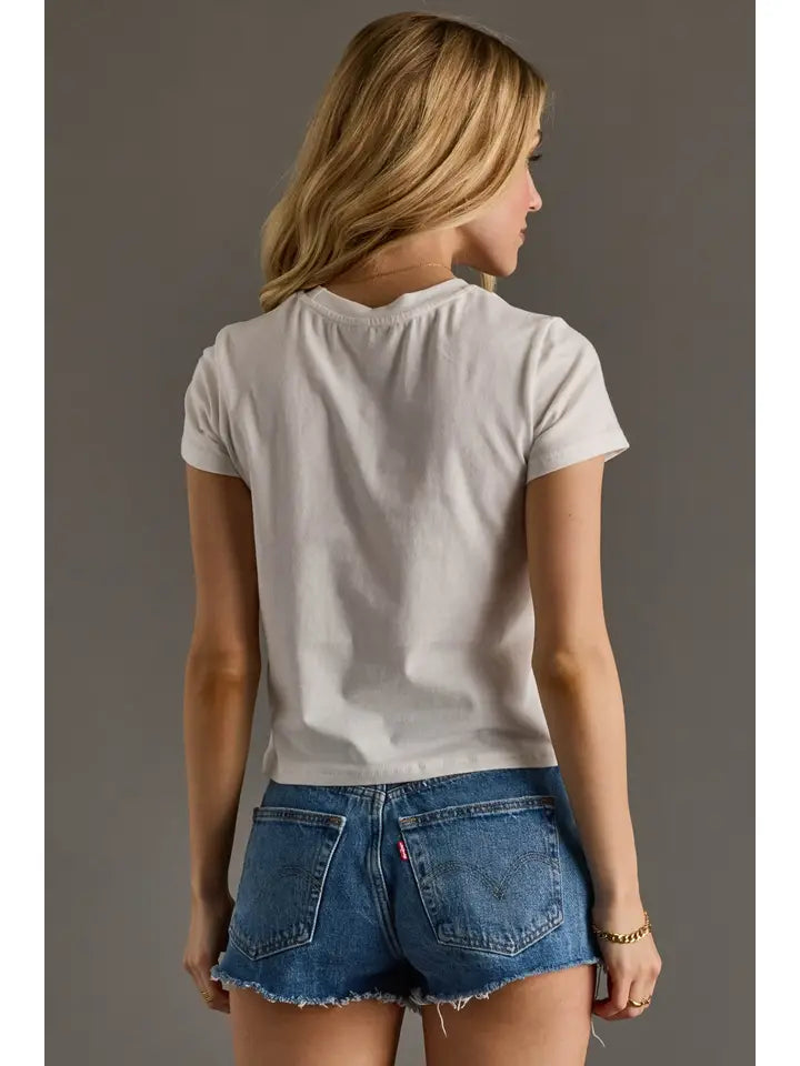 The Save A Horse Baby Tee features a bold black "Save A Horse" graphic with a cowboy design on soft stretch cotton fabric, complete with a fitted silhouette, crew neckline, and short sleeves for a casual western vibe.