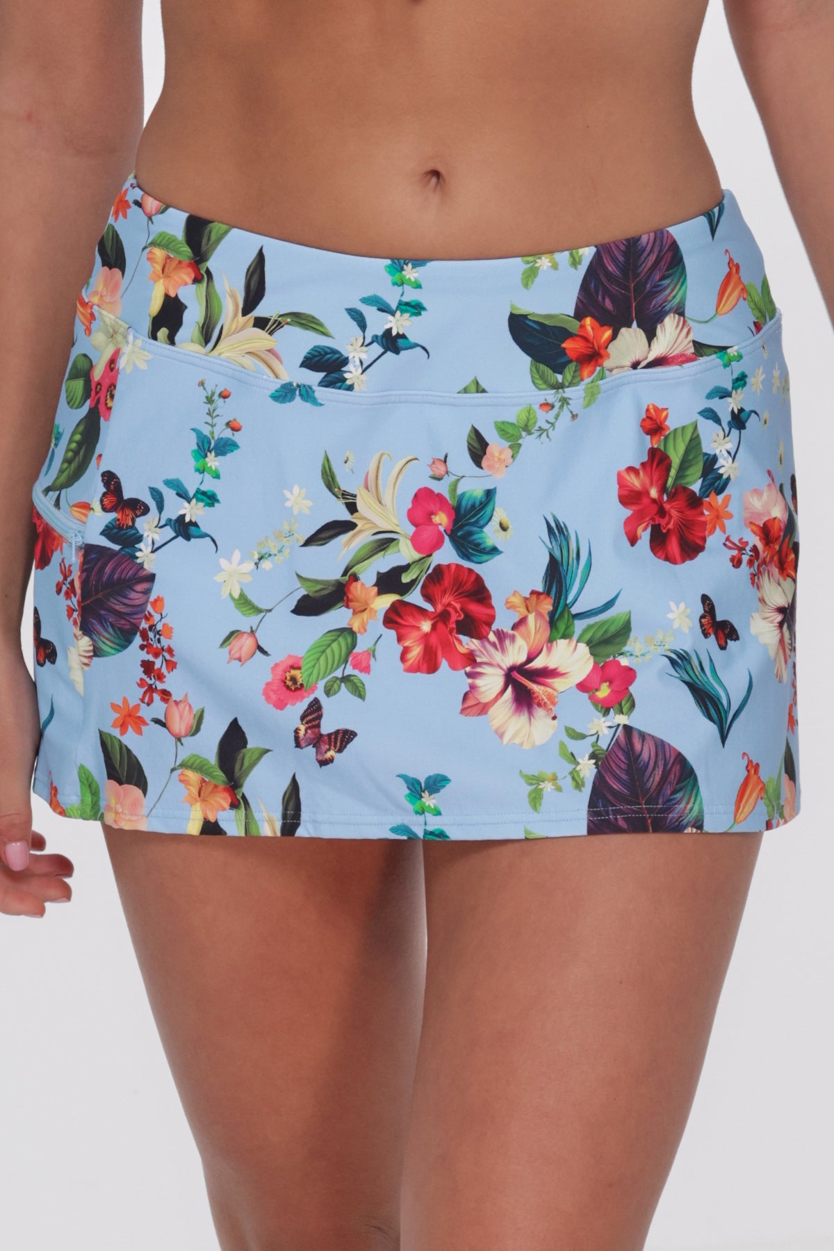 The Sporty Swim Skirt will become one of the most versatile pieces in your swimwear collection. This skirt is ideal for women who want more coverage along with functionality. Featuring hidden attached shorts and a wide waistband, it will keep you comfortable on those busy summer days. Also includes a side zipper pocket and a mid-rise fit.